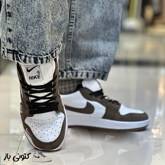 کتونی مردانه نایک ترویس طرحدار سفید قهوه ای