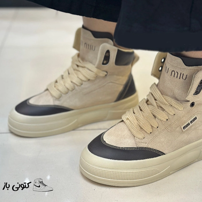 کتونی زنانه میو میو کرم قهوه ای ساقدار